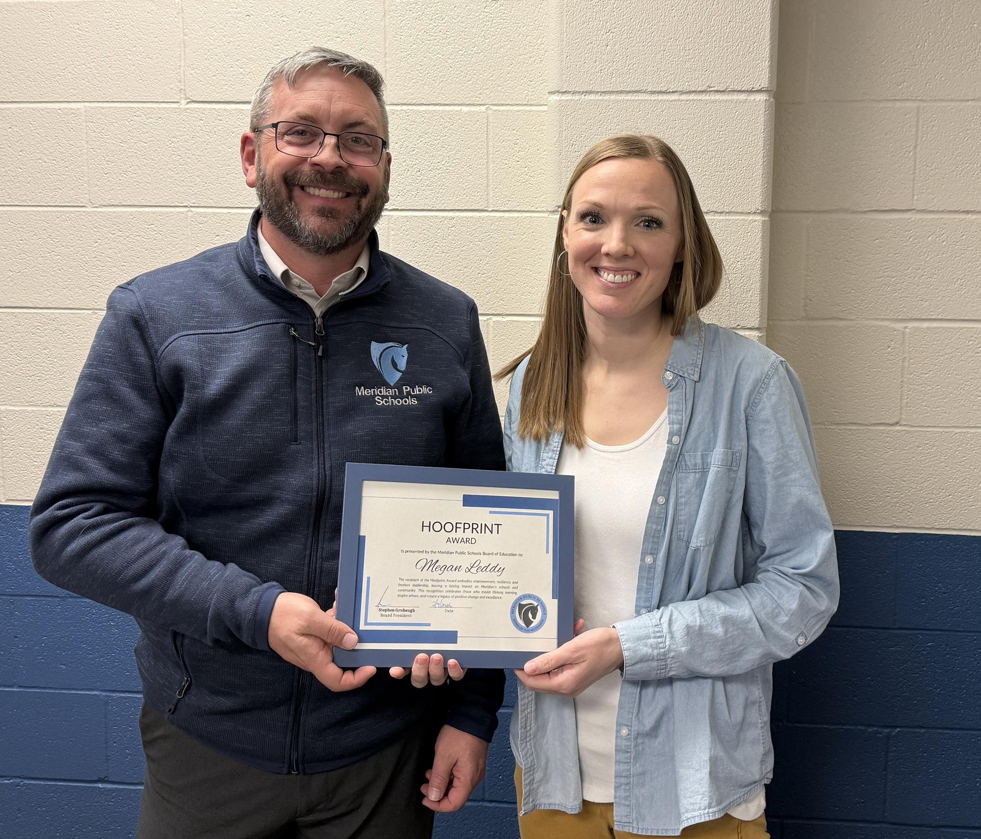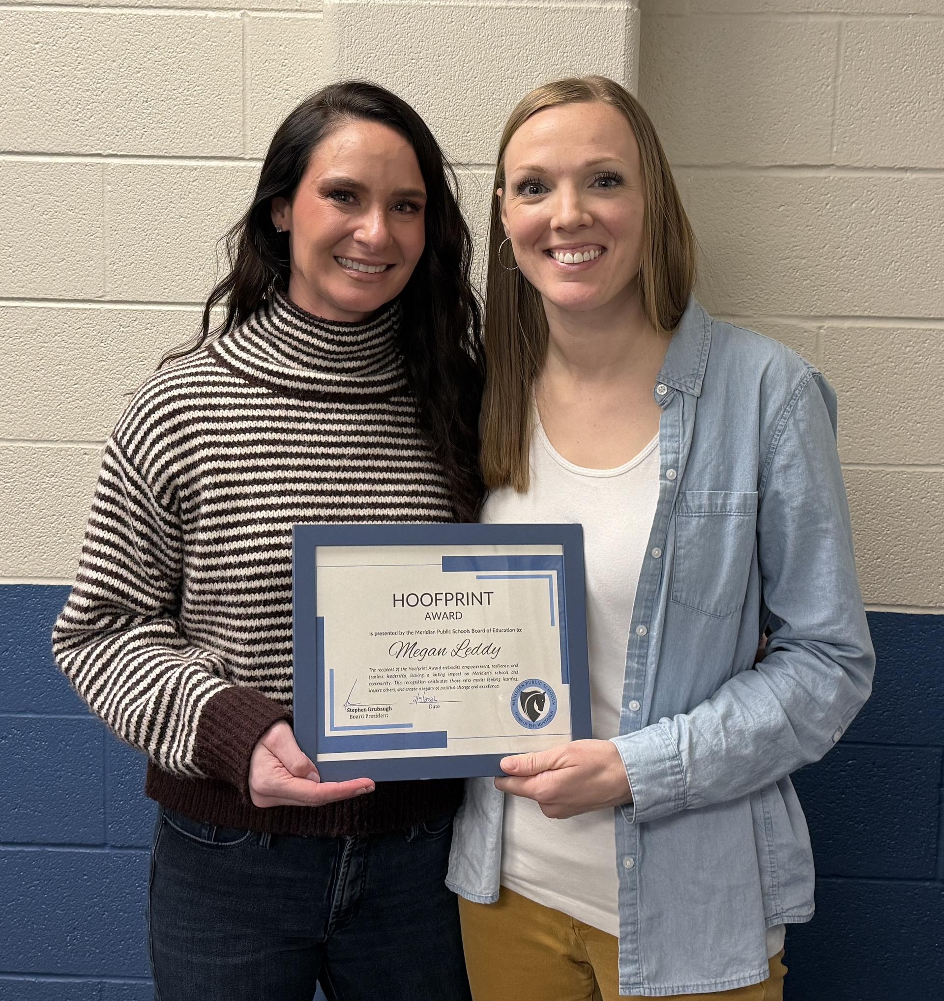 Just as a hoofprint marks the ground with strength and determination, Megan Leddy has left her mark on Meridian Public Schools through her compassion, dedication, and excellence in teaching. Her work continues to inspire students and colleagues alike to push boundaries, embrace growth, and thrive in an ever-changing world.