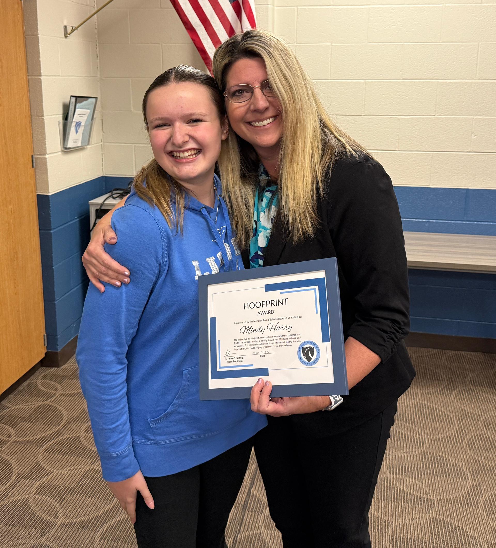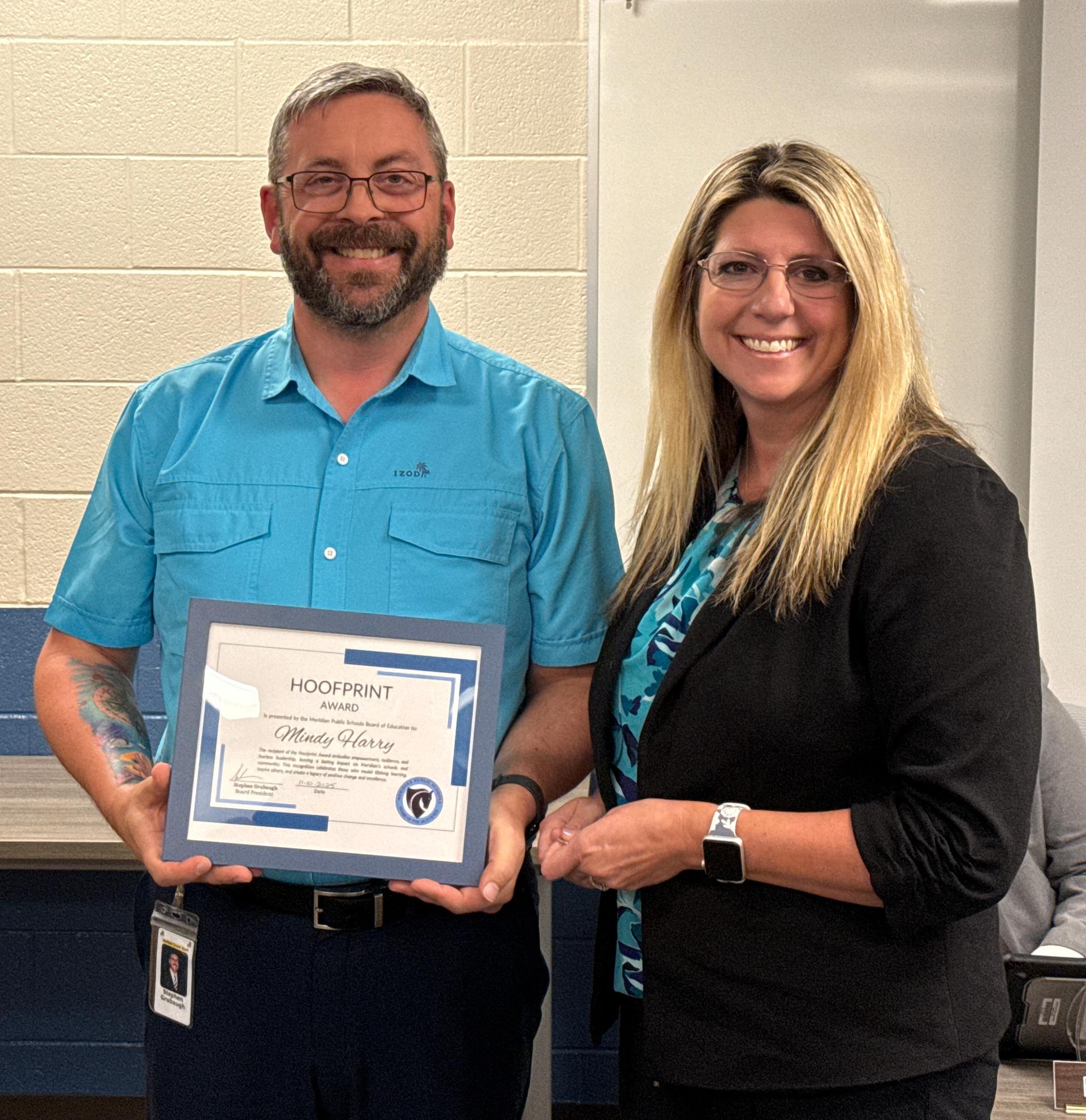 Meridian Public Schools is proud to announce Mindy Harry as the November recipient of the Mustang Hoofprint Award—a recognition that stands as a powerful symbol of empowerment, resilience, and fearless leadership.