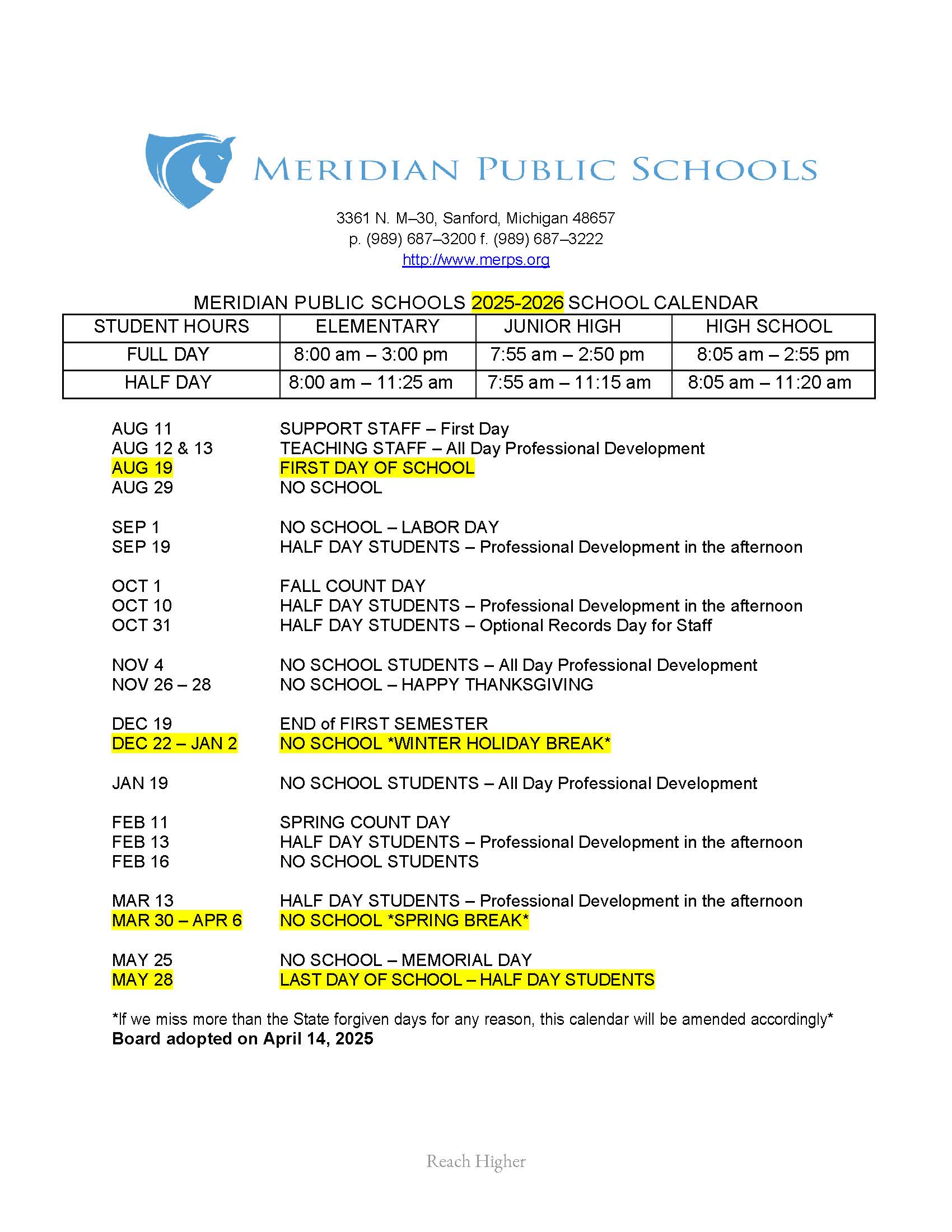 As we move through the winter months, please continue to watch for important communication regarding events, schedules, and district updates. Thank you for your continued support and trust as we work together to provide a safe, caring, and high-quality educational experience for every Meridian student.